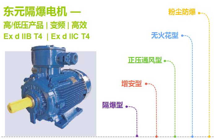 防爆电机是一种可以在易燃易爆场所使用的一种电机,运行时不产生电火花,安全可靠!按防爆原理分,可分为隔爆型电机、增安型电机、正压通风型电机、无火花型电机及粉尘防爆电机等。